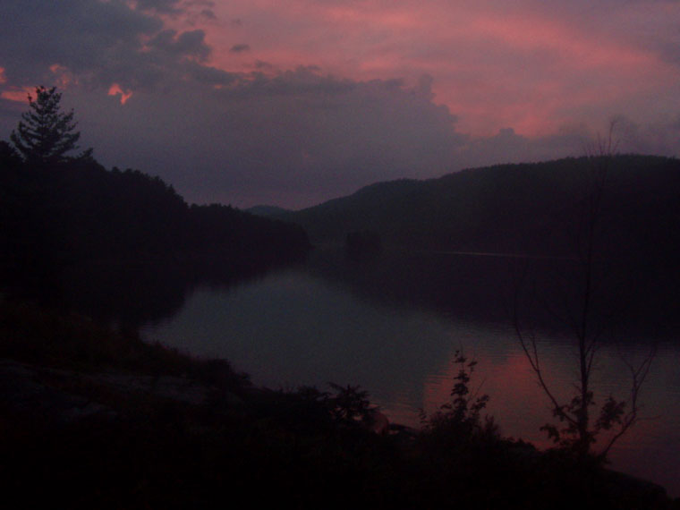 After a difficult winding paddle through lily and water plant clogged, resistant channels we eventually found the hidden portage to Howry Lake disguised in the marsh. After carrying part of our baggage part of the way along the mislabeled portage we were struck by the leading edge of a low pressure system which showered us with rain. We bogged down. Our decision not to proceed the late afternoon before was the only bright aspect of our predicament. We built a temporary shelter from the rain with the 18 foot canoe. Tony and I, who had managed to get ourselves soaked to the bone, found a burst of energy and completed the pack portion of the portage jogging up the trail. I guess the preceding four days had hardened us and revived in me the training and fitness level I had maintained before August 14, the last day I had done anything vaguely athletic when, in proper training, I should have been peaking. Or... maybe we jogged up the path with 50 pound packs only to keep warm. But, regardless of the reason; we overcame the loss of our spirit and I made good on my previous failures to carry my share of the load. During the portage it was raining too hard to bring cameras out of their protected places to take pictures. By the time we reached Howry Lake the rain had let up but the west wind blew us, shivering, to the first of two legitimate campsites. To go farther, perhaps to the legendary island cabin shelter donated to adventurers by a patron of the canoe; with a fireplace, would have been a risk. Paddling into a gale is sometimes impossible, if we missed the island or it was without shelter so...