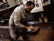 Richard's student, Jackie, watched while he printed.